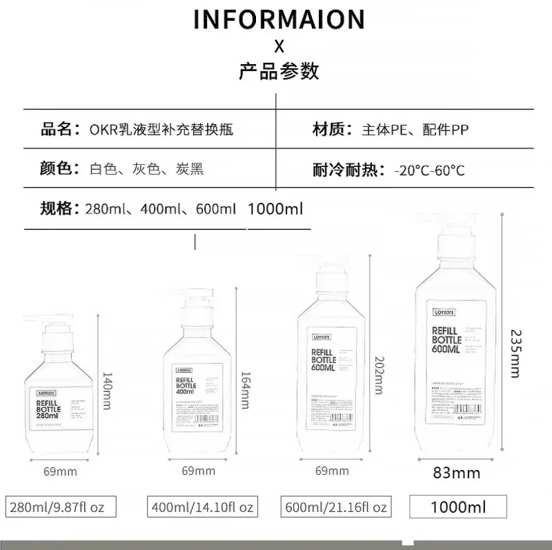 10PCS 280Ml-600Ml Empty Large-Capacity Lotion Bottle Shampoo/ Body Wash/ Hand Sanitizer